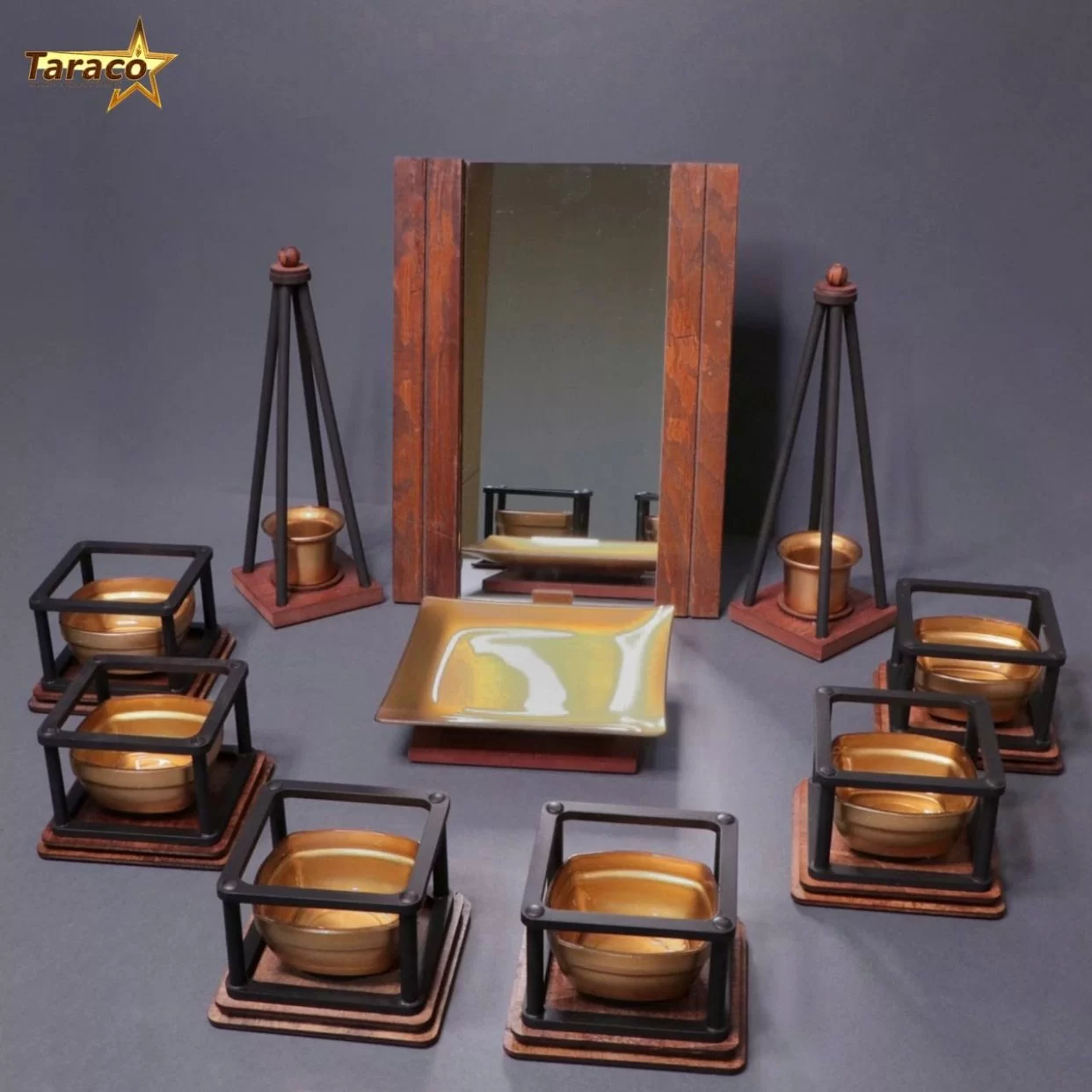 هفت سین دست ساز شمس در سه رنگ صدفی، فیروزه ای و اشرفی
